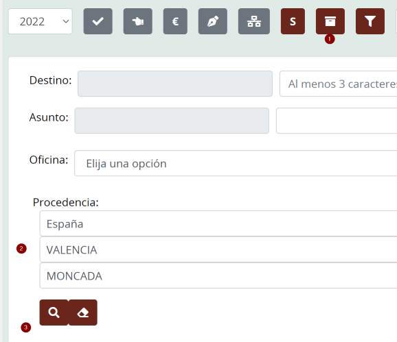 En el listado de registros ahora se puede filtrar por procedencia geográfica en el mismo diálogo de búsqueda de oficinas y destinos.